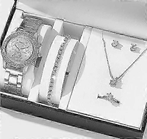 Watch Set For Women With Necklace Bracelet Ring And Earring, Gift Set Women's Watch 5 In 1 Wrist Watch Jewelry Set Gift For Mom Her