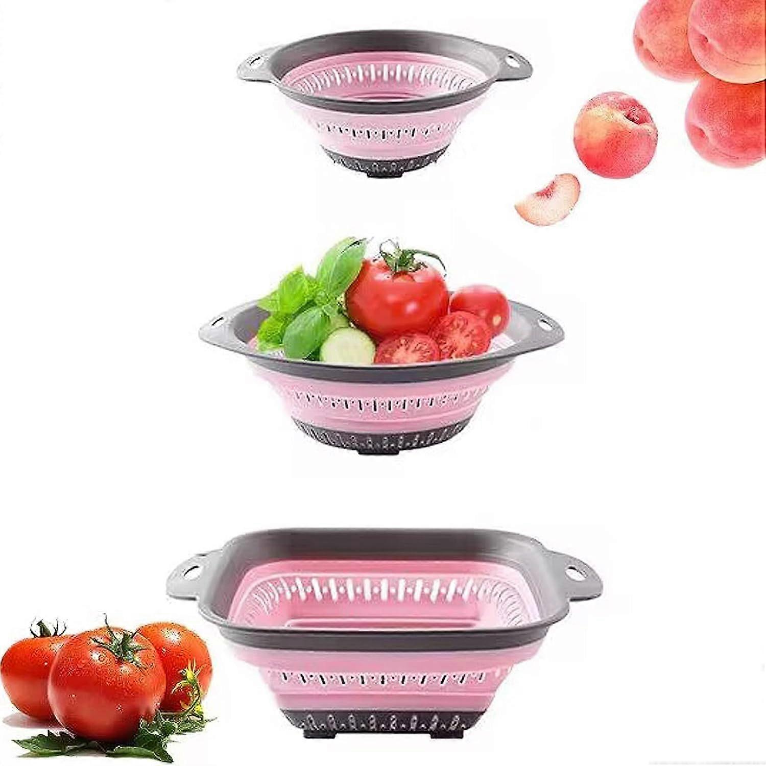 Collapsible Colander Set, BPA Free Silicone Food Strainer with Plastic Handle, Collapsible Heat Resistant Pasta and Vegetable Colander Dishwasher Safe