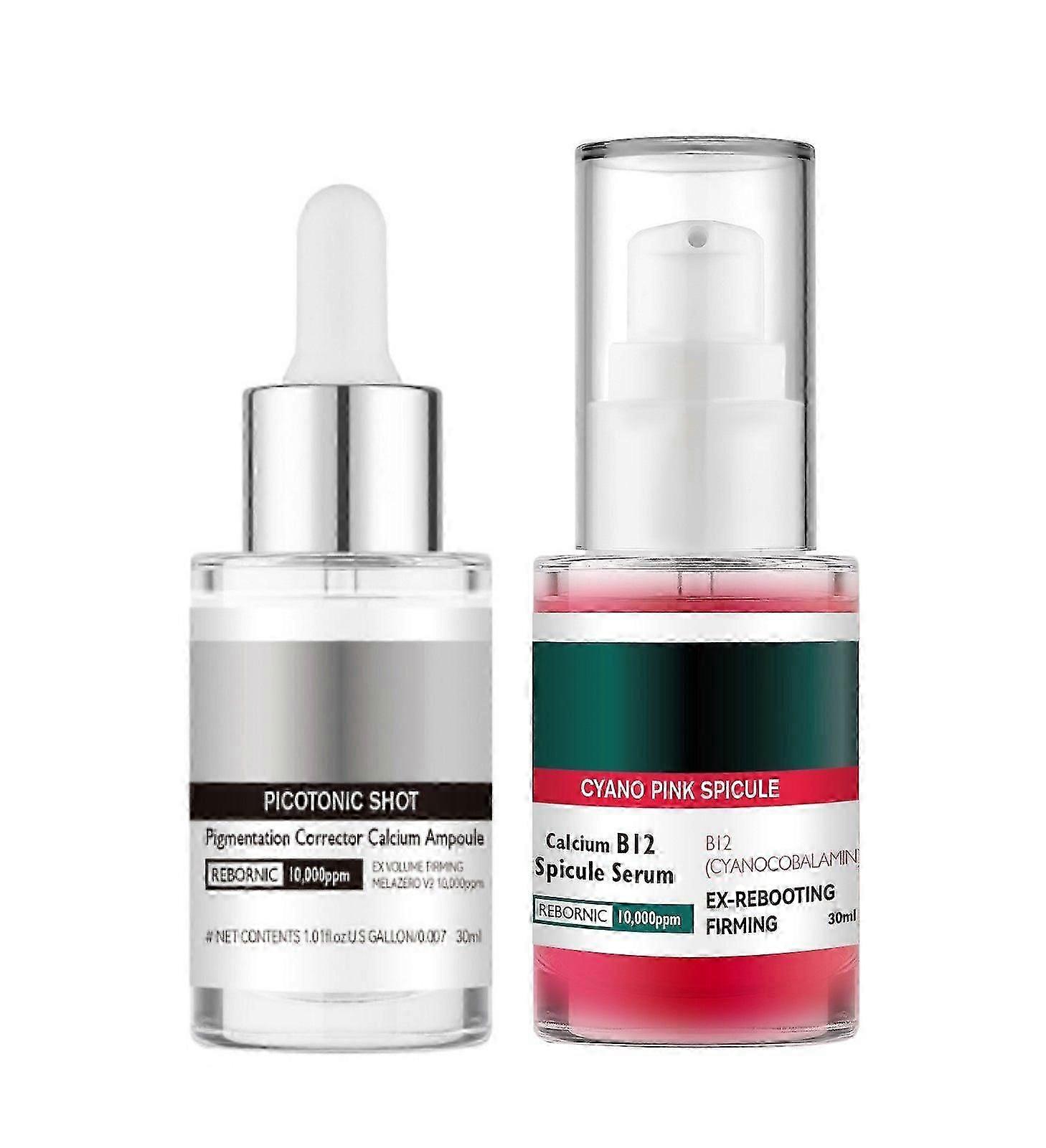 Pink Spicule Anti-Wrinkle Serum Set, Calcium B12 Firming Treatment with Micro-Spicules, Whitening Ampoule Duo for Pore Refinement, Glass Skin Finish
