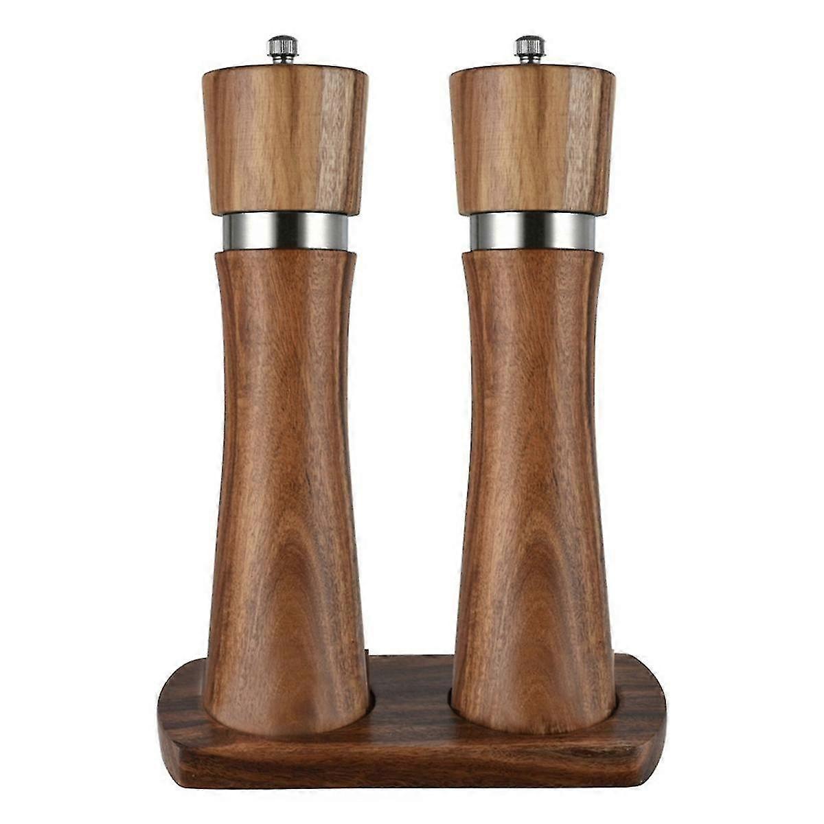 Salt And Pepper Mill Set With Mill Coaster, Adjustable Ceramic Grinder, Salt Mill, Stainless Steel
