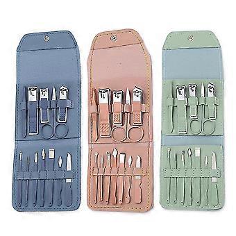 مجموعة مقص الأظافر والباديكير ، مجموعة تجميل من الفولاذ المقاوم للصدأ 12 قطعة ، أداة للعناية بالأظافر لغطاء جلد السفر ، أخضر * أزرق * وردي