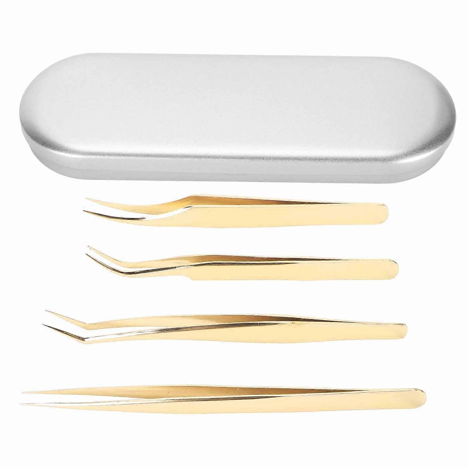 Eyelash Extension Tweezers Set Professional Stainless Steel Durable Lash Tweezers for Individuals Beauty Salon Gold Metal