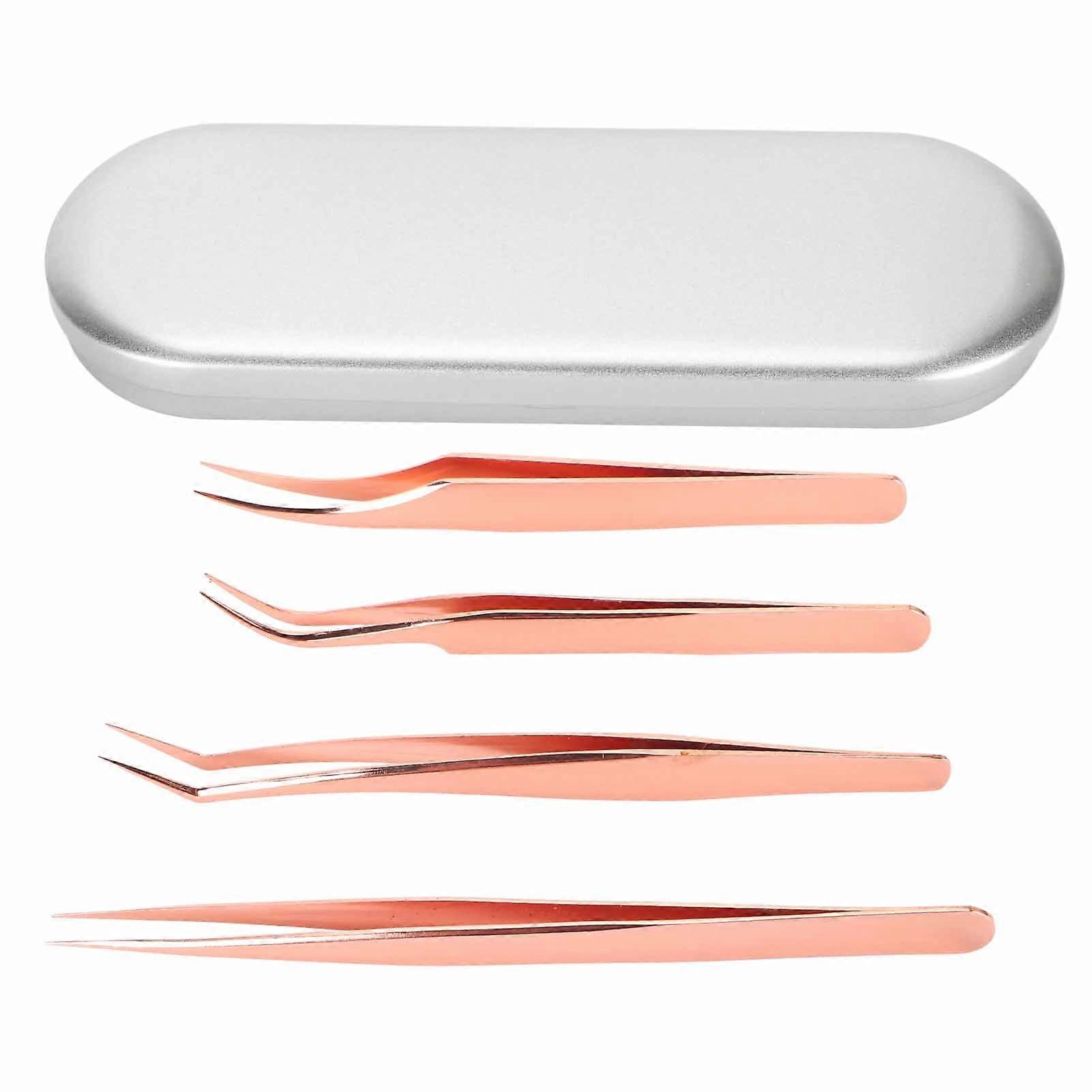 Eyelash Extension Tweezers Set Professional Stainless Steel Durable Lash Tweezers for Individuals Beauty Salon Rose Gold