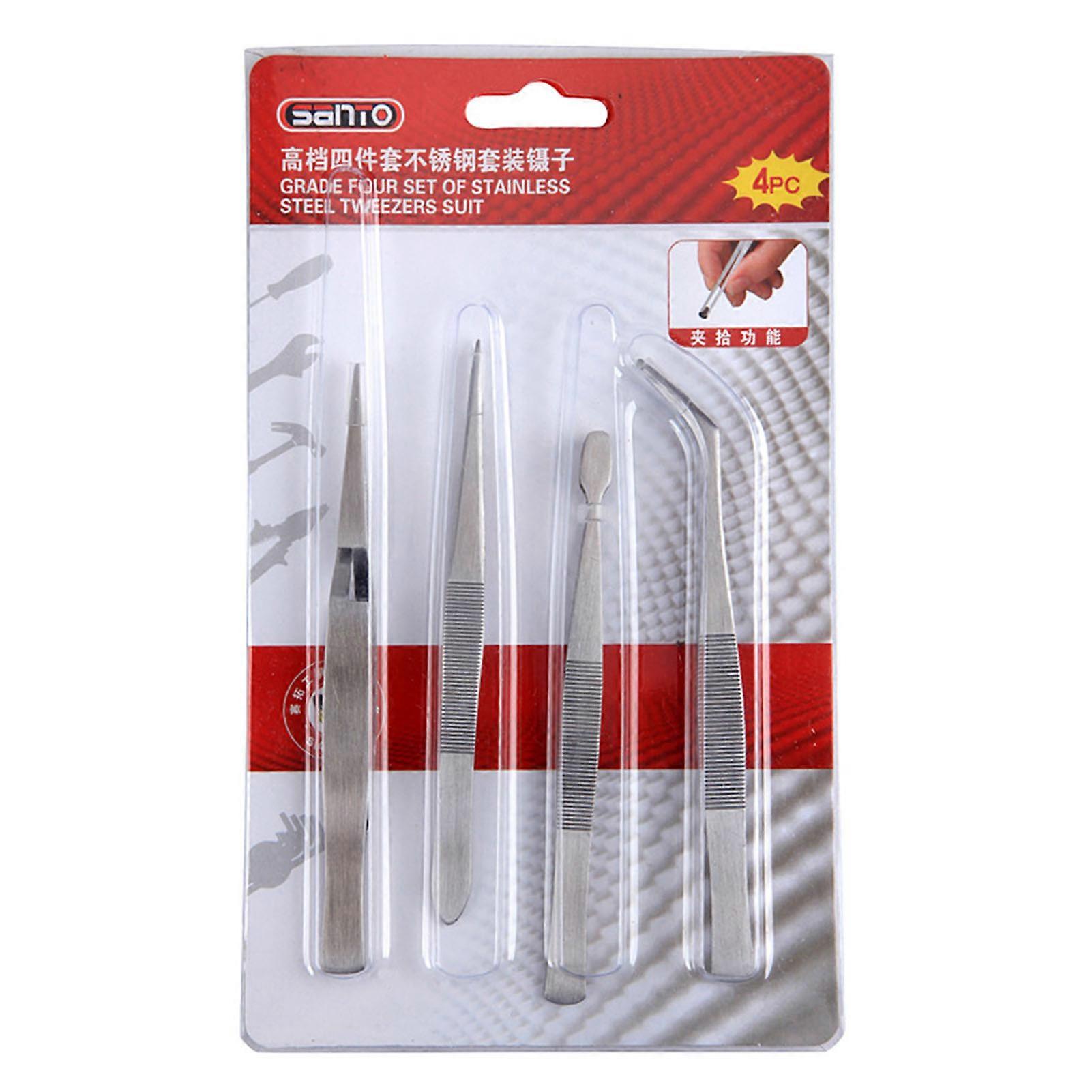 4Pcs Stainless Steel Maintenance Tweezers Set Practical Robust Accurate Pointed Curved Flat Tweezer Kit 1383