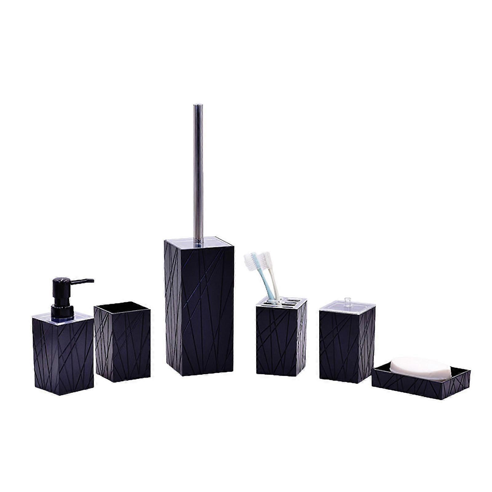 6 Piece Bathroom Accessory Set with Soap Dispenser Pump, Toothbrush Holder, Toilet Brush, Tampon CaseTumbler and Soap Dish Feature: Quantity: 1Pcs Material: Plastic Color:Black Gross weight: 695g/1.53lbs Packing size: 20.5x18x12.5cm /8.07x7.08x4.92in Descrition: Fully Functional Completed Set:1*Soap Dispenser, 1*Toothbrush Holder, 1*Toothbrush Cup, 1*Soap Dish, 1* Tampon case, 1*Toilet brush. A completed bathroom accessory set that equips everything you will need to organize your toiletries. Plastic materials:Made of environmentally friendly plastic, no odor, durable, strong , not easy to break, ensuring the health of you and your family. Modern style combined design:Take your bathroom decor to stylish new heights with this luxury bathroom accessories set, very stunning and has a great t-ouch of extra elegance to the bathrooms. Great for multi-occasion use:A complete countertop bathroom accessories set will surprise you and your guest. Its modern design will meet anybody's taste and is often used in bathrooms, clubs, homestay, hotels, and can also be used as a perfect gift for housewarming and weddings. Giftperfect for giving as a gift for family, relatives. Package Content: 1xSoap Dispenser 1xToothbrush Holder 1xToothbrush Cup 1xSoap Dish 1x Tampon case 1xToilet brush