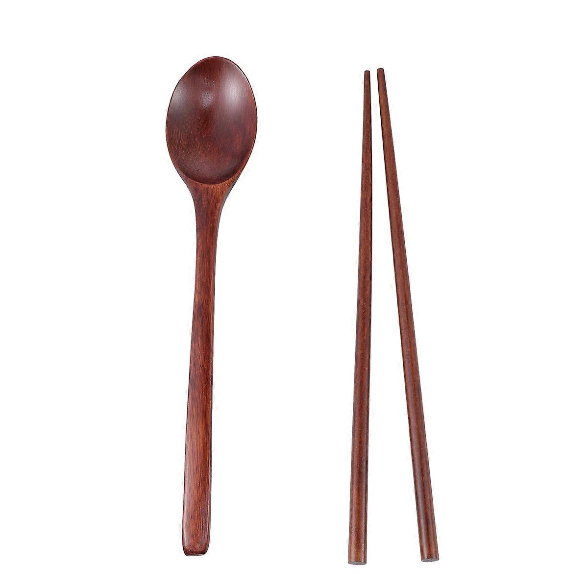 Wooden Chopstick Spoon Set Plant Oil Coated Natural Wood Material for Kitchen Use Coffee Color