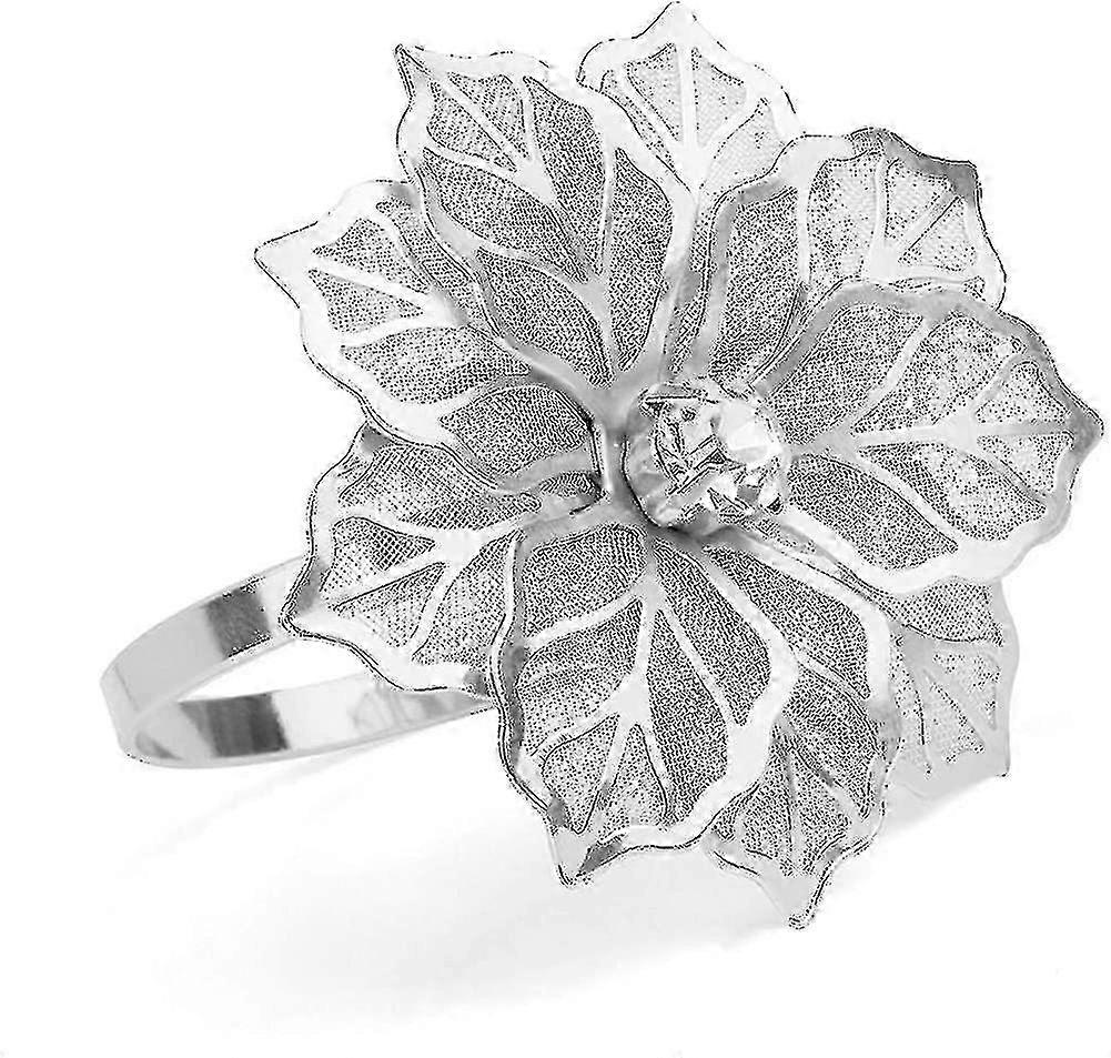 Set of 12 Alloy Napkin Rings with Hollow-Out Flower Design for European Market