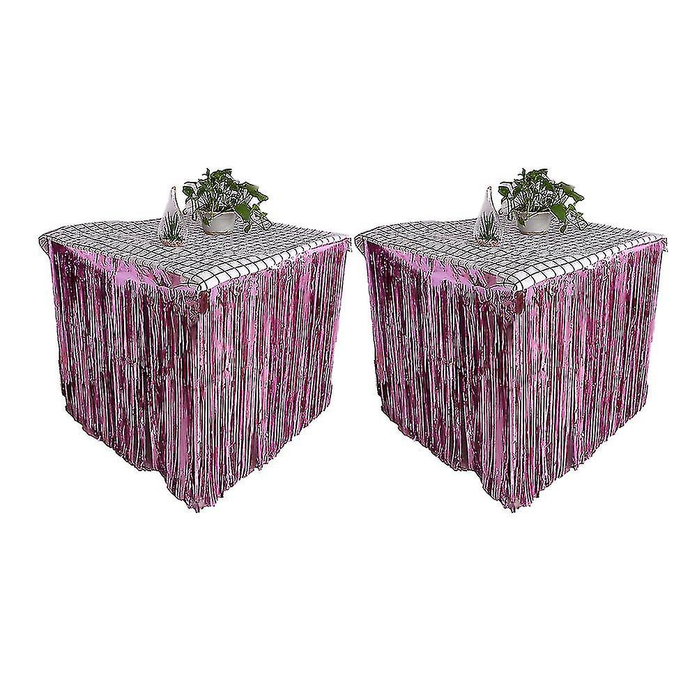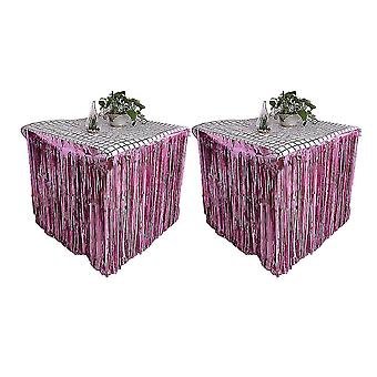 Set Of 2 Metallic Foil Fringe Table Skirt, Tinsel Disposable Skirting For Parade , Party, Birthday