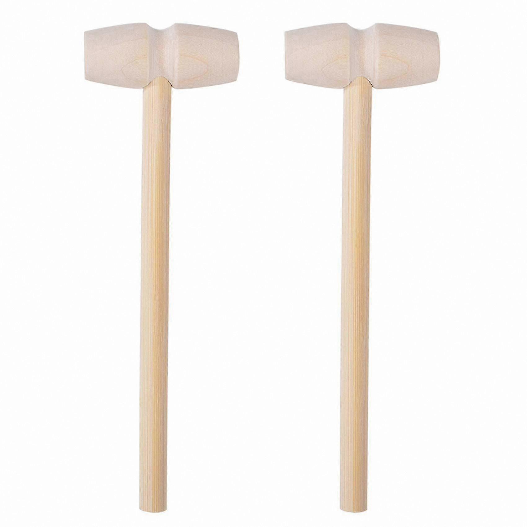 Set of 2 Mini Wooden Hammers for Crafting, Chocolate, or Seafood Use, Natural Wood Mallets