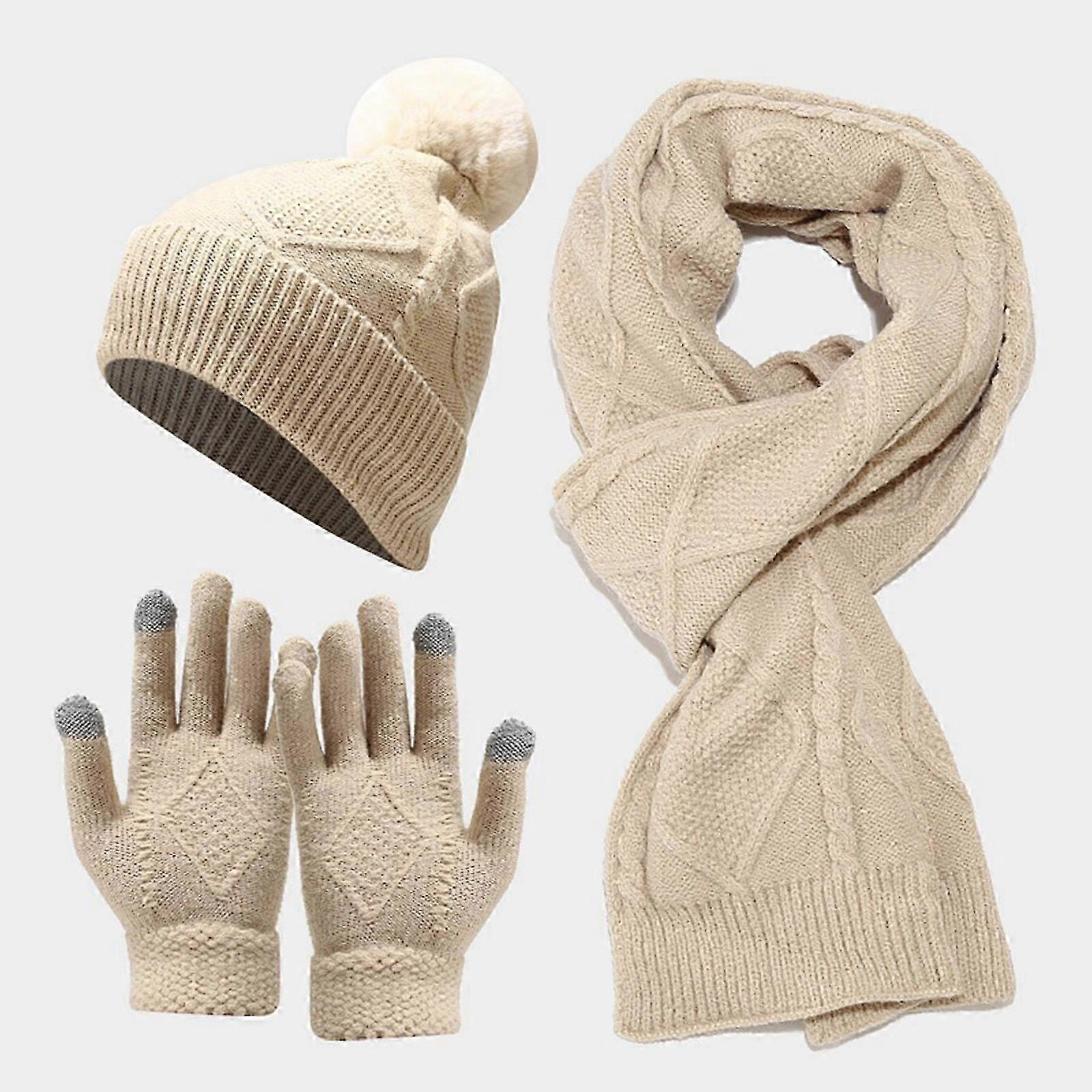 3pcs Women Winter Thick Warm Knit Hat Scarf And Touchscreen Gloves Knitted Set