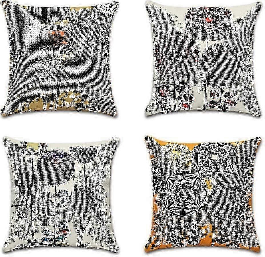 Set of 4 Soft Cotton Linen Cushion Covers for Home Decoration, Abstract Flower, 45 x 45 cm