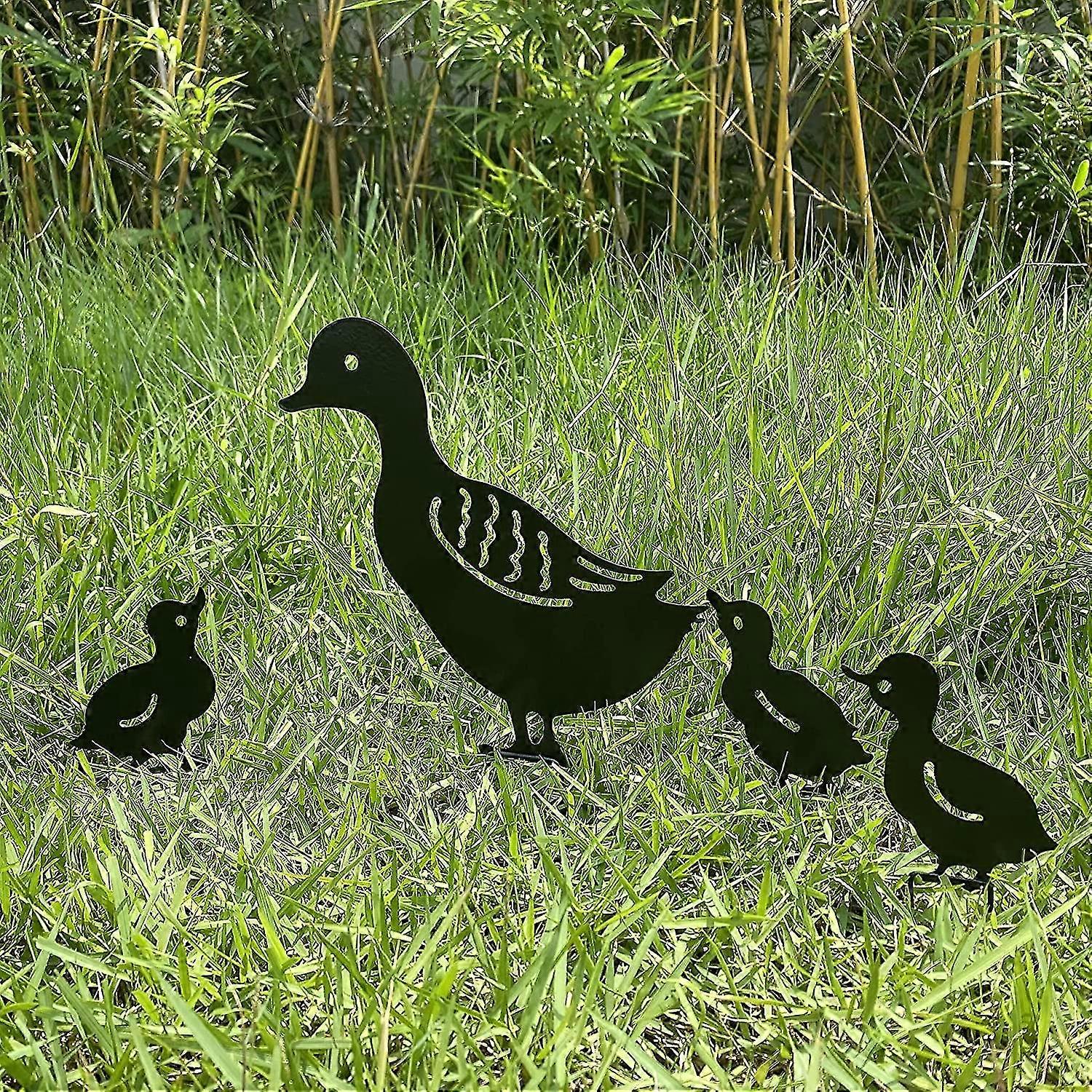 Set Of 4 Metal Garden Duck Decoration,ducks Family Garden Stakes,iron Animals Shaped Yard Farmhouse Decor Outdoor Black Ducks Silhouette For Art Backy