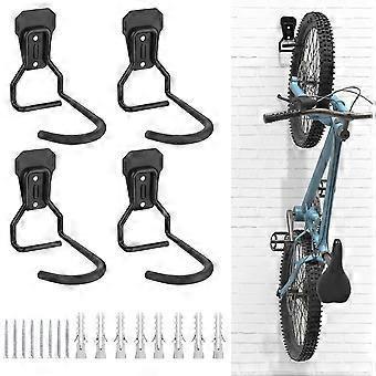 مجموعة من 4 خطافات دراجة ، رفوف شماعات حديدية ، حامل حائط تخزين على شكل حرف L للخدمة الشاقة ، رف دراجة عملي للجراج المنزلي ، أسود