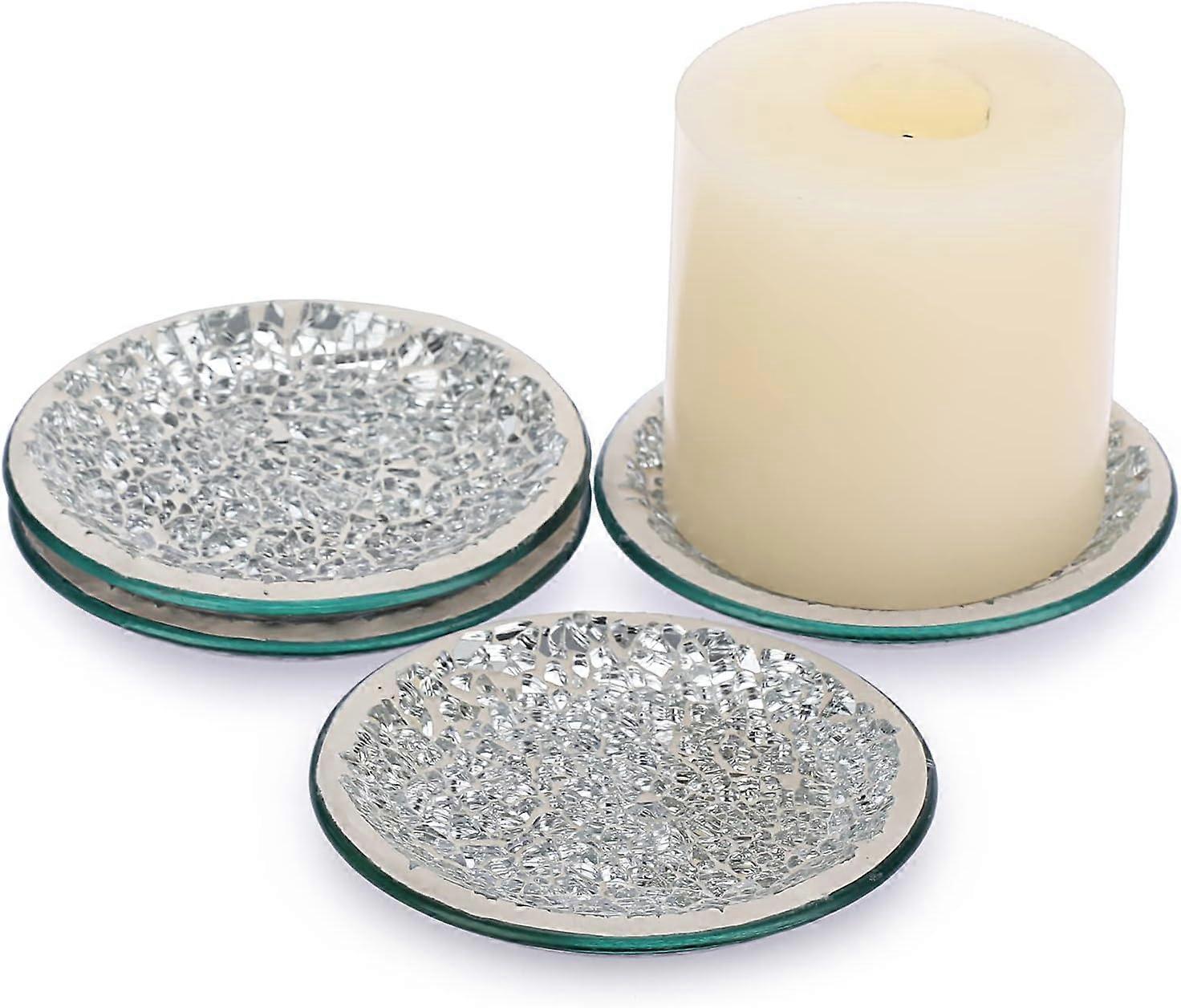 Set of 4 Mosaic Glass Candle Plates, 10cm/ 4 Round Candle Plate Holder, Decorative Pillar Candle Holder Tealight Candle Mat, Cup Plate Coasters
