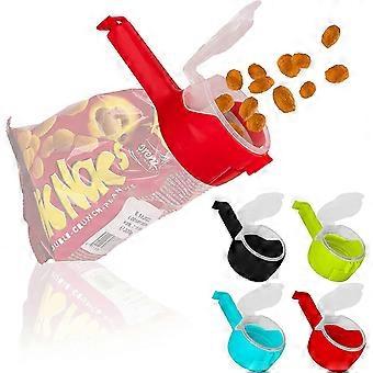 Set of 4 closure clips with spout, kitchen clip, bag clips, snack dispenser, freshness clips