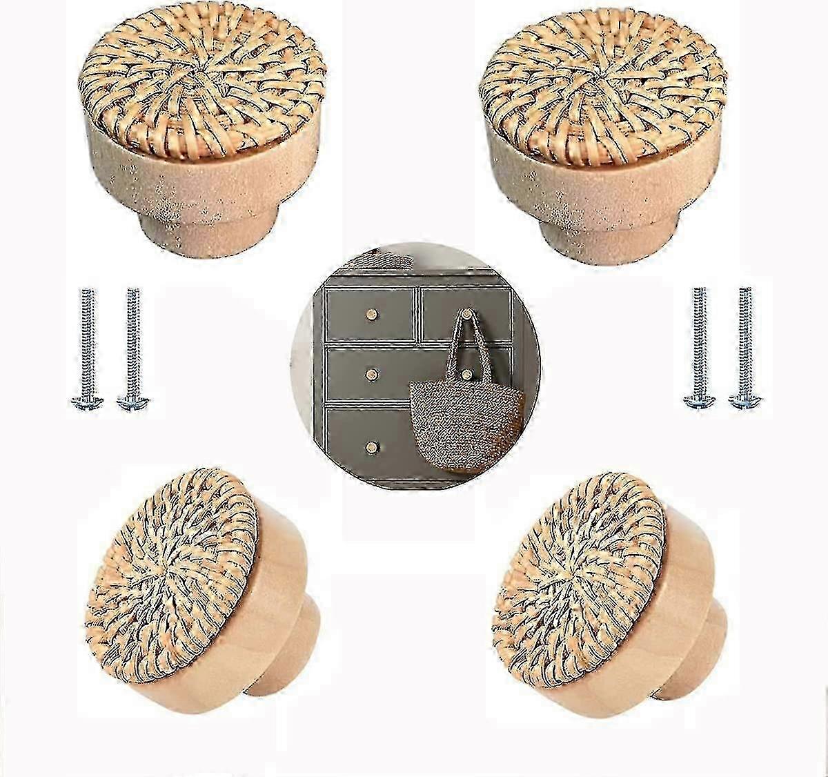 Set of 4 Rattan Furniture Knobs Bohemian Style Furniture Knobs Wooden Vintage Style