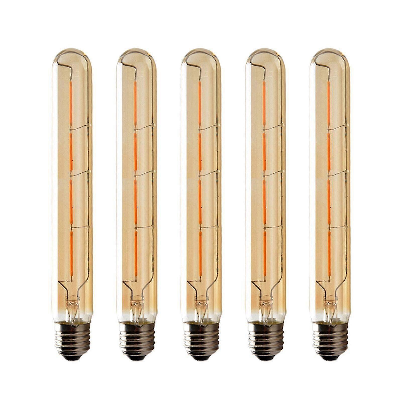 Set Of 5 T225 Long Tube Bulbs, Led Edison Filament, 6w E27 Base Warm White, Amber Glass For Decorative Light Bulb, Ac 220-240v