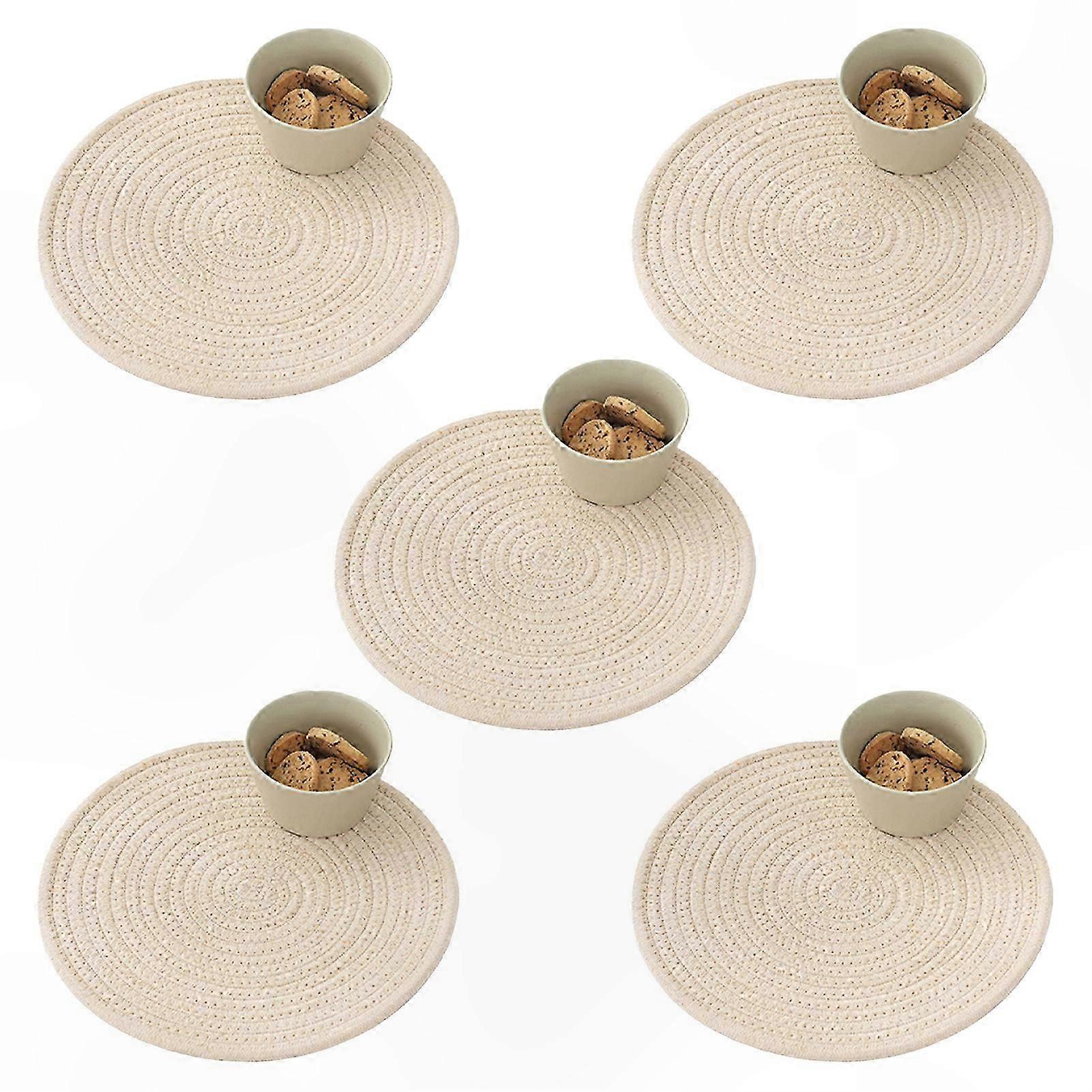 Set of 5 Round Woven Placemats, Cotton Rope Pads for Hot Dishes, Heat-Resistant Coasters for Wooden Tables