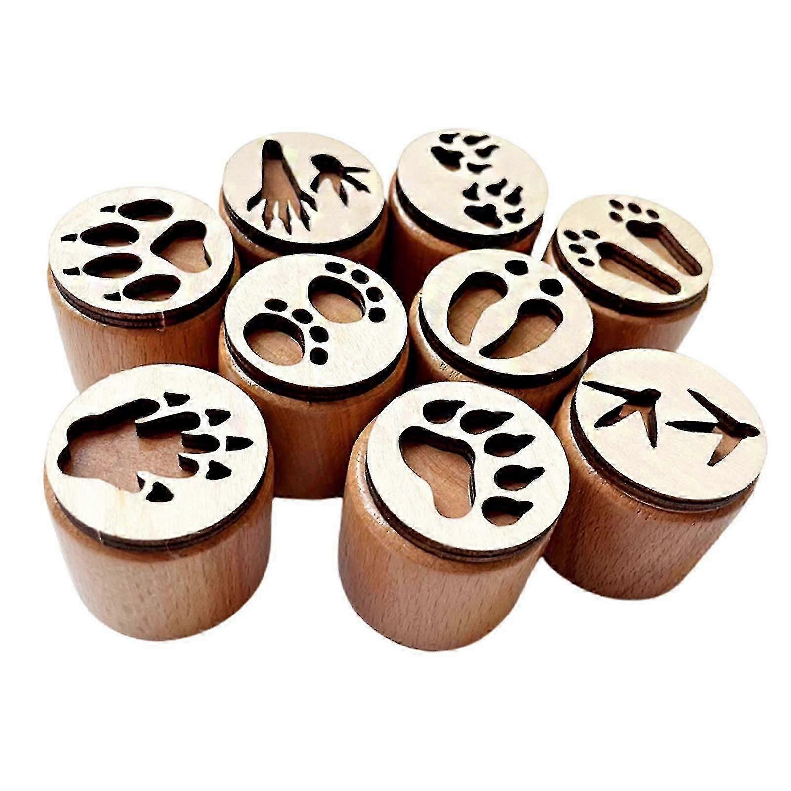 Set of 6 Wooden Animal Track Stamps for Journaling and Planner Decoration in Beige - UK Crafters