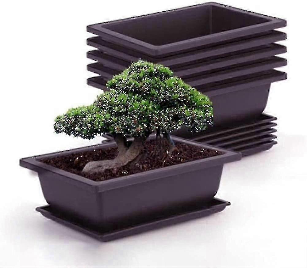 6-Piece Set of Square Plastic Bonsai & Succulent Training Pots with Tray for Garden and Living Room