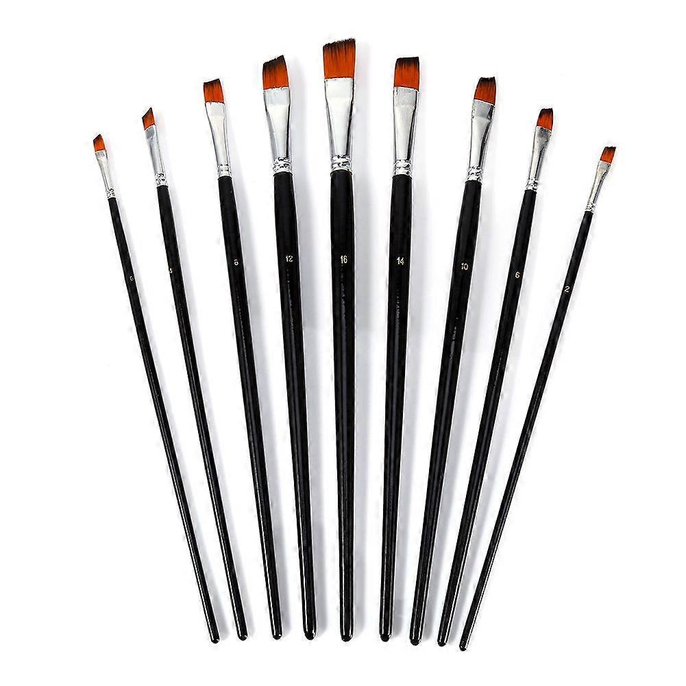 9 PCS Nylon Oblique Flat Tipped Paint Brushes Set Inclined Plane Wooden Long Handle Brush
