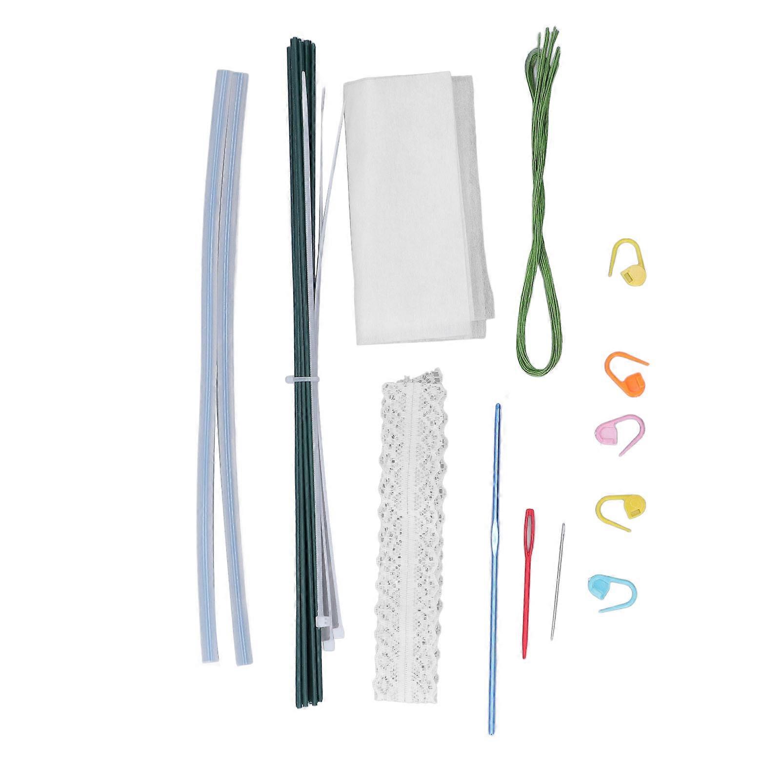 Hand Knitted Bouquet Material Set Fine Workmanship Artificial Flower Bouquet Materials DIY Yarn Bouquet Kit for Girl Gift 6 Pink Tulips 3 White