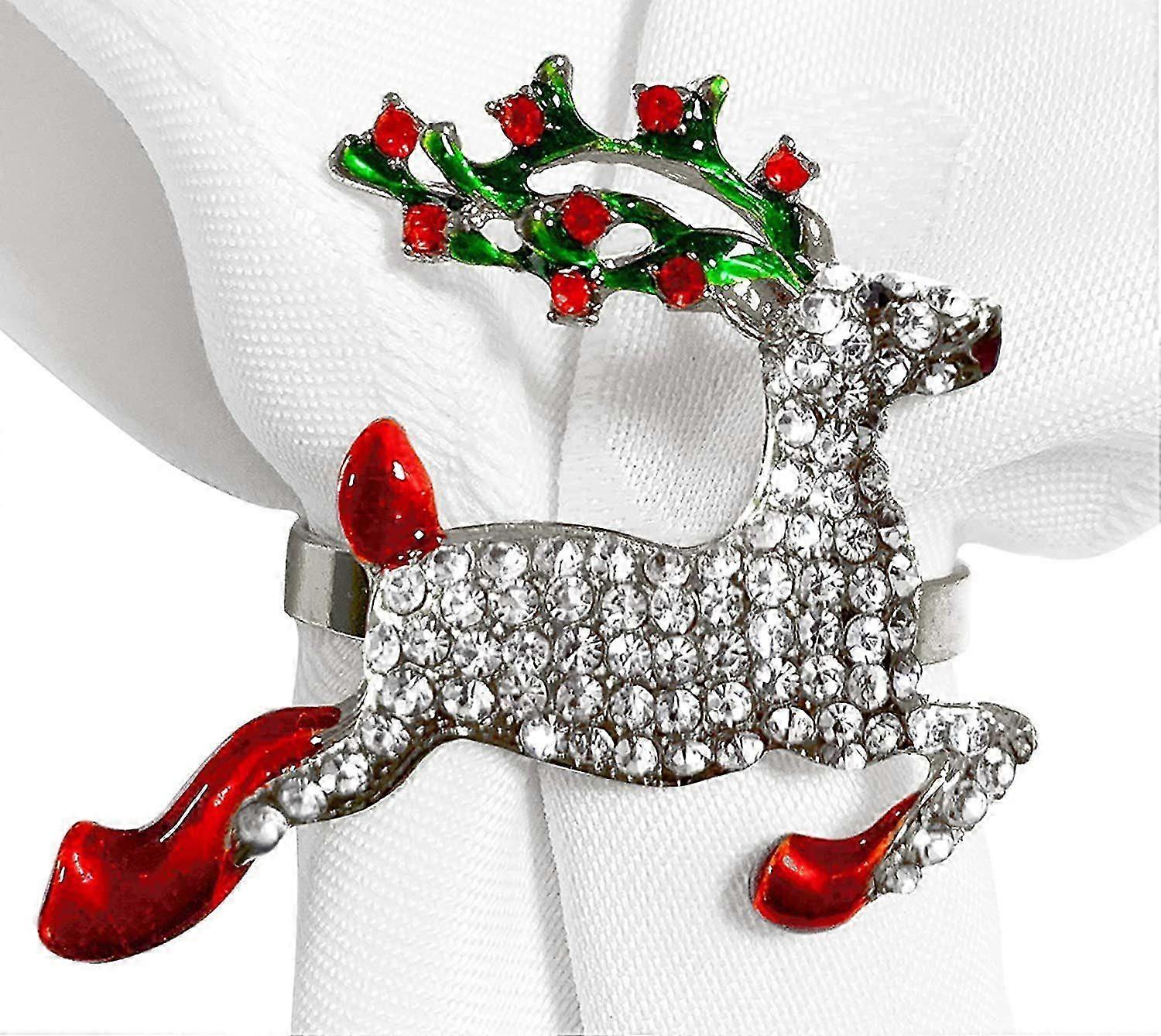 Valentine's Gift Set of 6 Elegant Deer Napkin Rings with Rhinestones for Christmas Wedding Decor