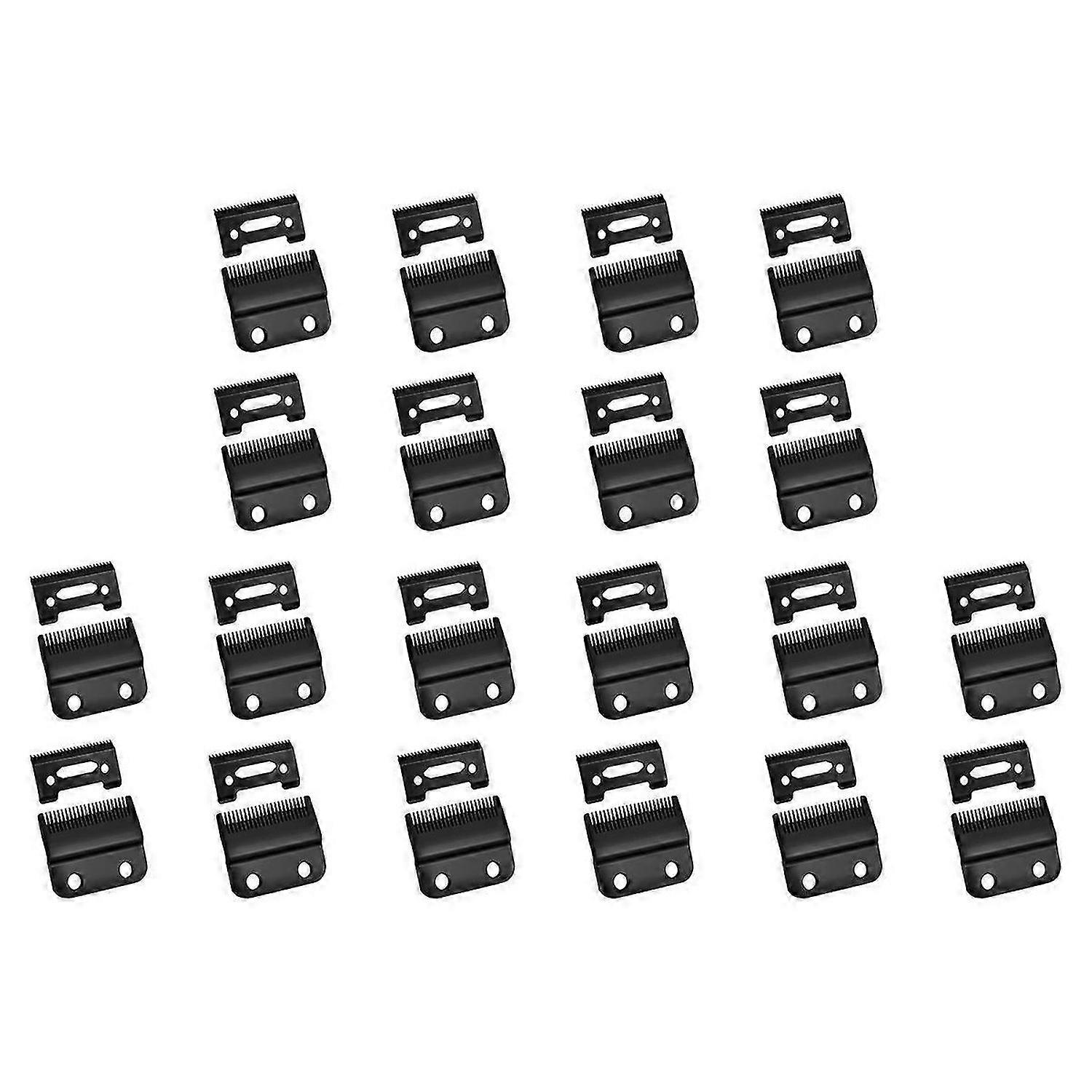 These hair trimmer replacement blades are made of metal material, which feature - and wear-, suitable for long-life use and can stay pointed, sturdy and reliable to be applied for a long time Each piece of hair clipper replacement blade is designed with 2 holes, which makes it considerate and convenient to operate, brings you cleaner and more stable hair cutting experience, also be applied smoothly to gild through most hair types with ease Our adjustable hair clippers blades are compatible with 8148, , 8591, 8504, 2241 and 2240, you can just replace the blades according to your needs, and no need to choose a new clipper, with correct installation, it can work as effectively as a new one Make the adjustable lever of the blade go to the full forward position, place the small top blade over the clipper drive finger, then place the large bottom blade on top of small top blade, use screws and partially tighten, keep sure that the extreme left hand tooth of top blade is aligned to the first small tooth of bottom blade, then you can tighten screws, you can switch on and off several times to make sure whether you have aligned blades; Note: the screws are not included colour: black Material: metal Package Contents: 20 x big knife 20 x small knife Only the above package content, other products are not included. Note: Light reflection and different displays may cause the color of the item in the picture a little different from the real thing. The measurement allowed error is +/- 1-3cm.