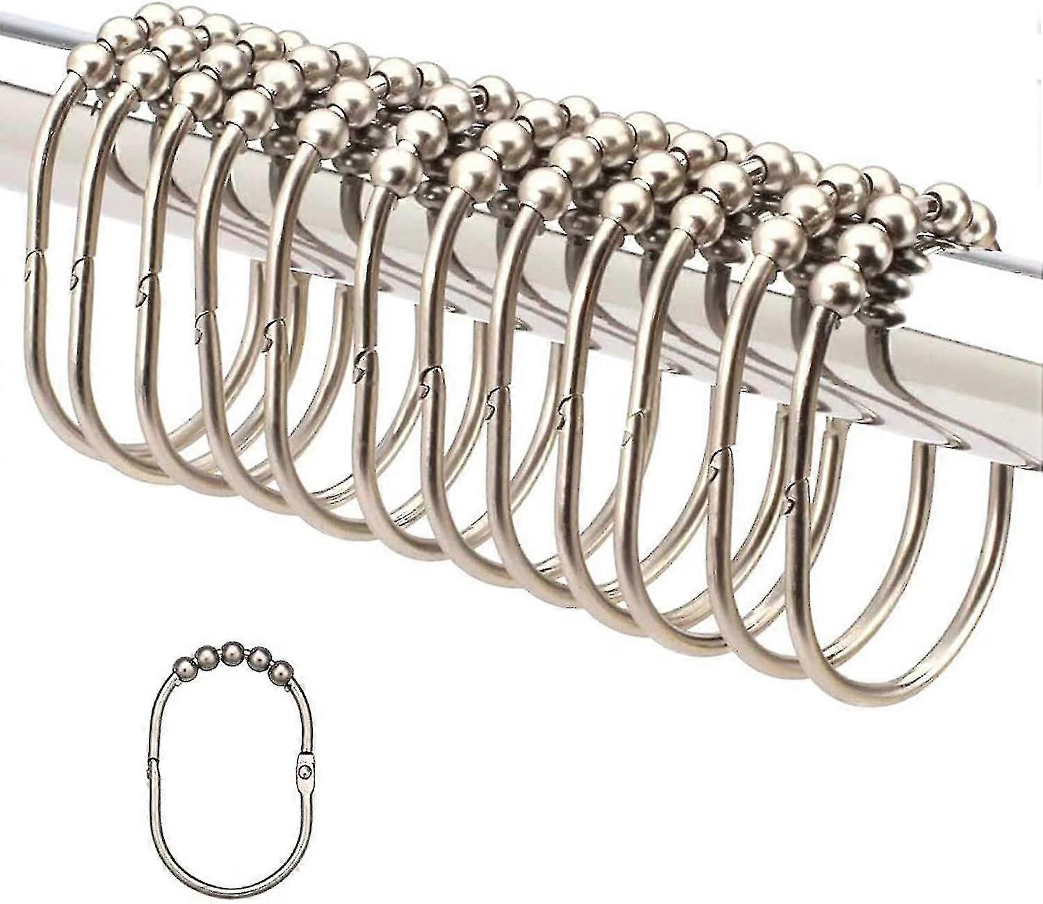 Wide Shower Curtain Rings/hooks Set, Decorative Brushed Satin Nickel Finish, Easy Glide Rollers, 100% Rustproof Stainless Steel, Set Of 12 Rings