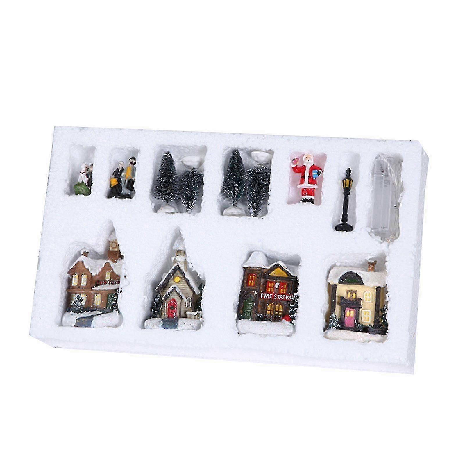 Set 10pcs Resin Christmas House, Xmas Scene Village Collections Winter Cabin Town Street L