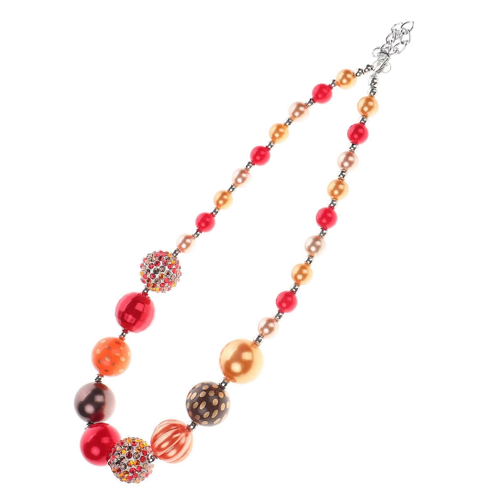 Children's Jewelry Thanksgiving Themed Necklace For Girls Assorted Color Beaded Design Adjustable Chain Length 1Set