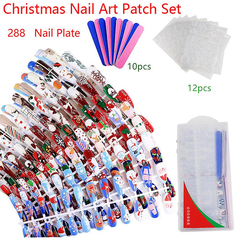 Boxed 288 Pcs Christmas Nail With Jelly Glue And Nail File Easy Nail Sticker