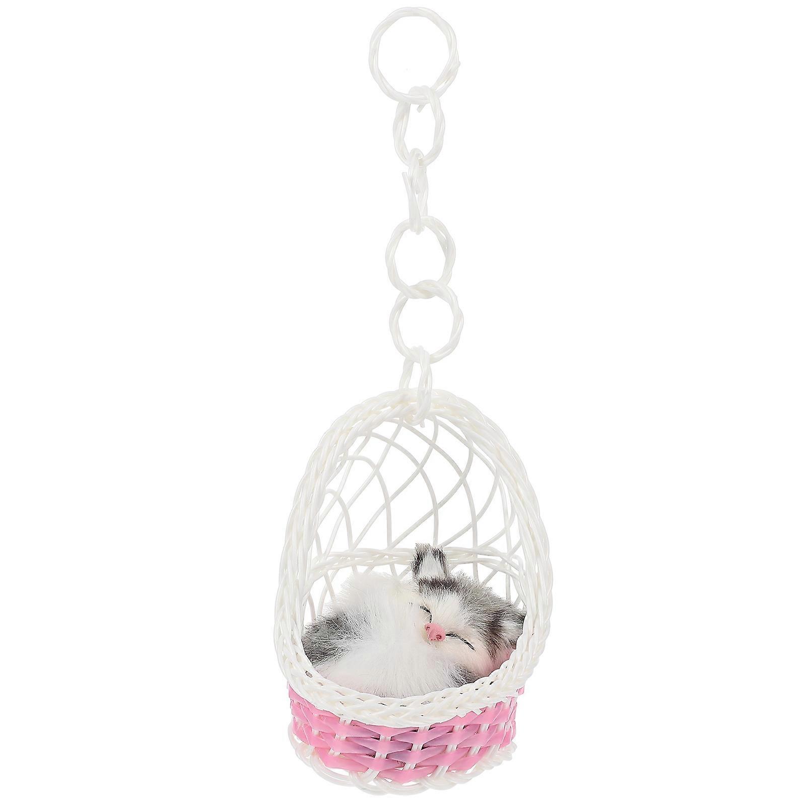 Simulation Animal Figurine Hanging Basket Decoration Grey Cat Model Home Ornament Birthday Festival Delicate Craft Special Texture