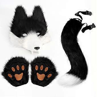 Simulation wolf mask set wolf teeth three-dimensional cos animal tail plush tail Halloween dance party props