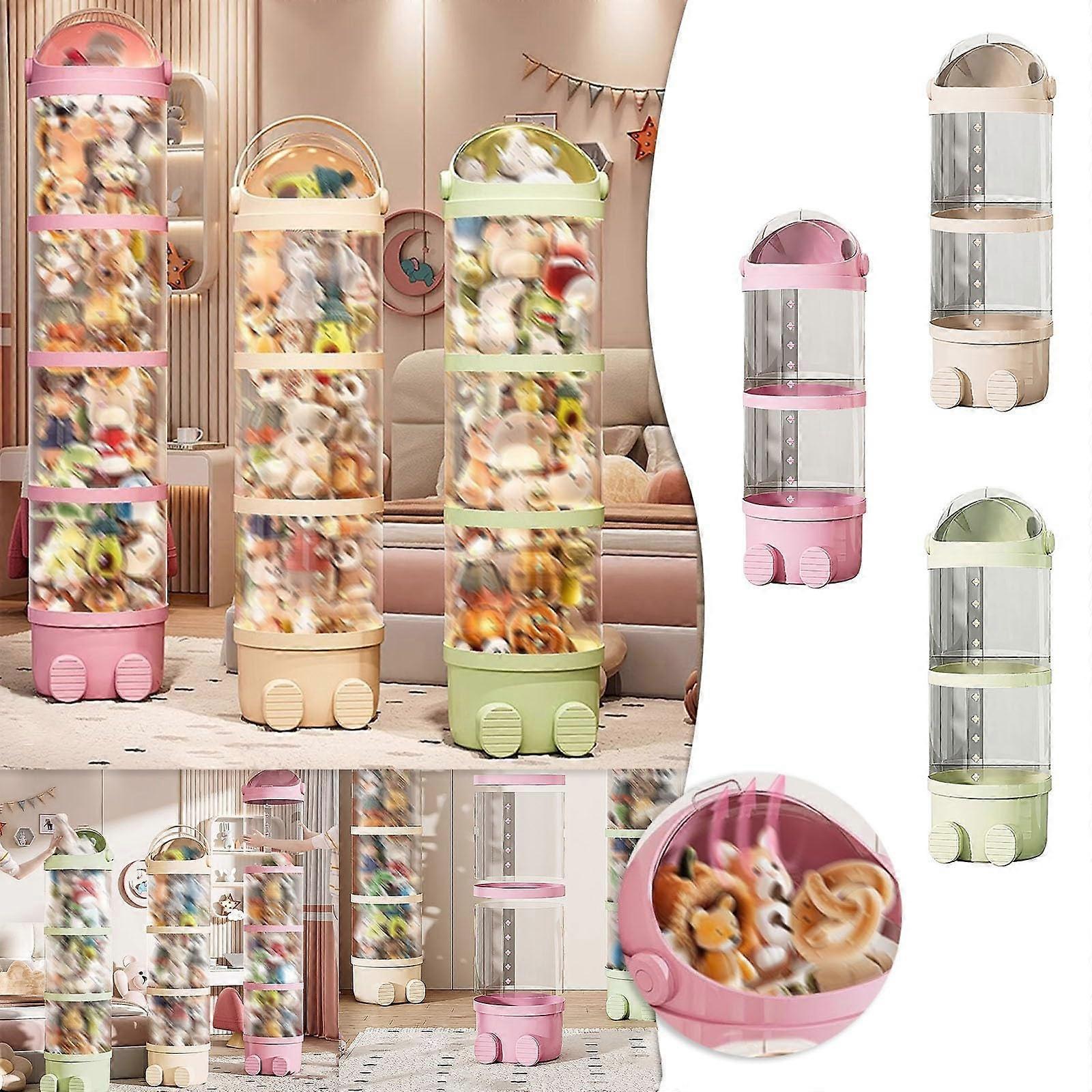 Cuddly Toy Zoo Stuffed Animal Storage Tube, Transparent PET Toy Organizer, Large Pink Doll Display Bucket with Lid, 2 Layers