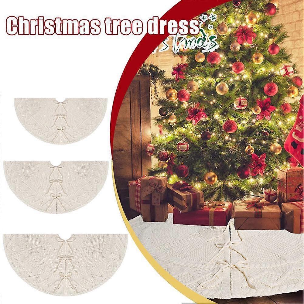 Knitted Christmas Tree Dress Skirt Cream White Tree Skirt, Braided Cable
