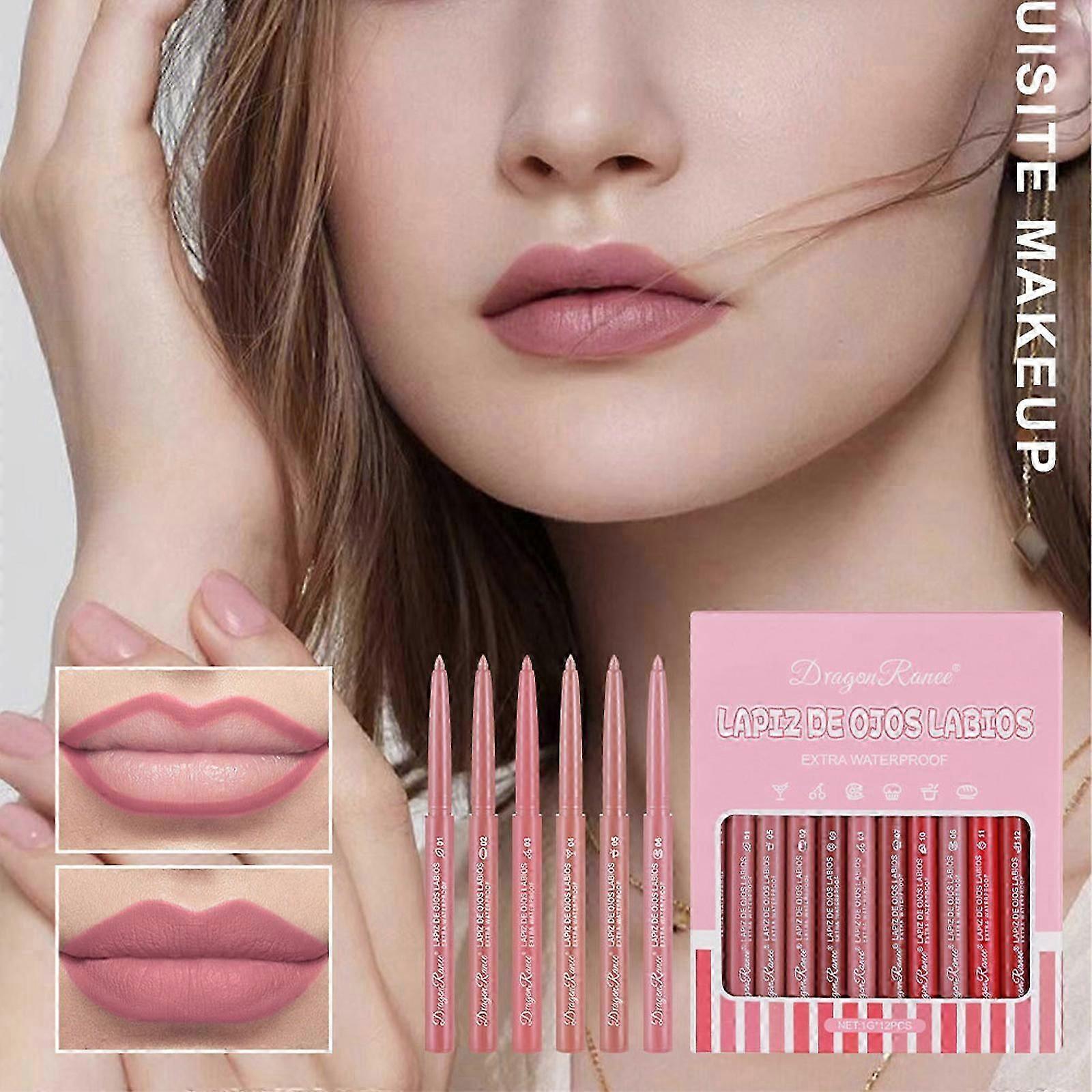 12 Colors Matte Lip Liner, Lipstick Set, Lips Makeup Kit, Velvet Nude Waterproof Long Wear Lip Gloss, Lip Liner, Waterproof Matte Lipstick
