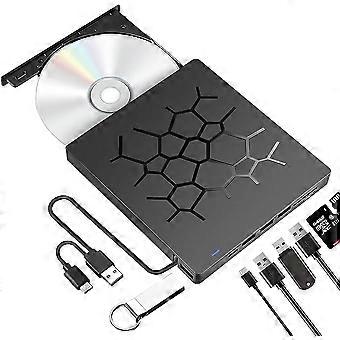 External CD DVD Drive,USB 3.0 Portable CD/DVD Rewriter Burner, Low Noise High Speed Data Transfer Drive,Slim Optical CD ROM Drive for Laptop Desktop P