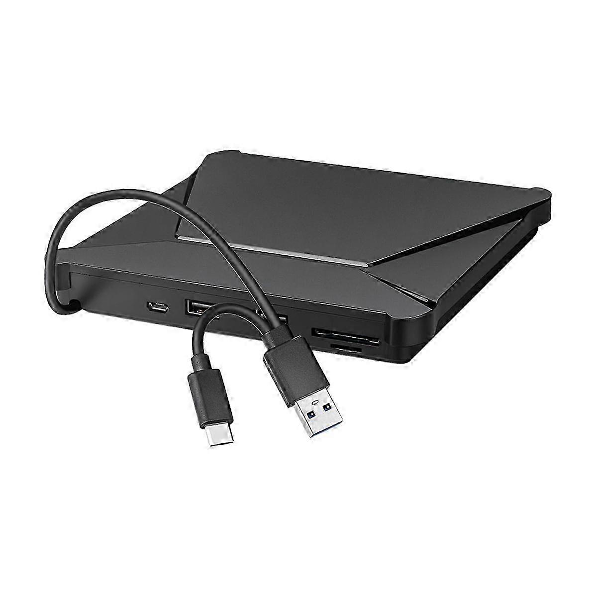External DVD Drive, USB 3.0 Type-C, Portable CD DVD Burner with Dual USB Ports and Card Slots