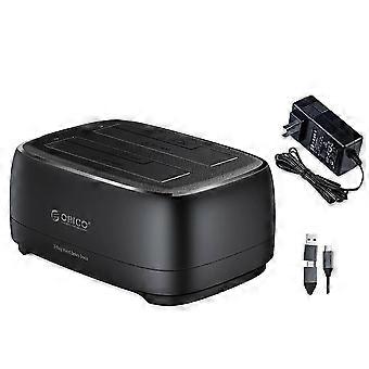 محطة محرك الأقراص الصلبة مزدوجة الخليج Usb3.0 Type-c Hdd محطة إرساء مع محول طاقة مقاس 2.5 / 3.5 بوصة