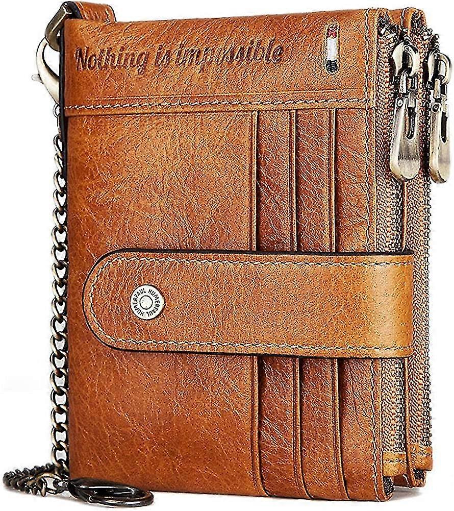 Wallet Men Genuine Leather Wallet Men Rfid Protection Wallet Small With Chain Gift