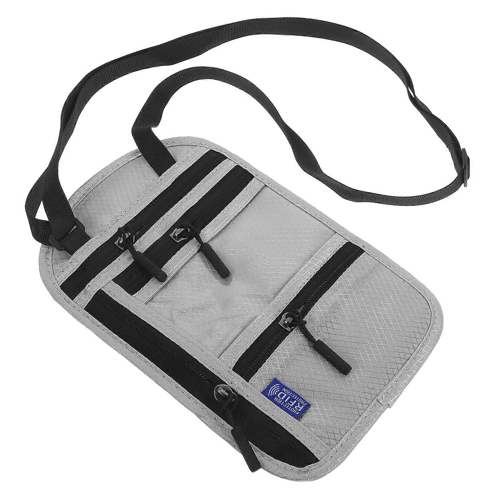 Travel Neck Wallet with Protective Pouch Lightweight Multi Pocket Organizer for Passport, Cash & Adjustable Neck Strap for Men & Women (Light Grey)