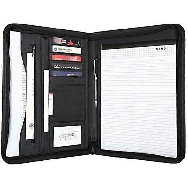 About this item Design: PU leather portfolio, document holder, unisex business PU leather diary; retro Italian design, classic style. It adapts to commercial, office and conference activities. This portfolio is truly delicate and more practical. Material: Outer PU leather; dylon interior. You can take it with you everywhere, put it in your handbag, backpack, laptop case... it's easy to use. Structure: This document holder with zipper, in which there are more than 30 sheets of paper; multi-card slot, with pen holder and open pocket for Ipad, zippered pocket for secret documents. On the outside front there is an open pocket, practical for items. Dimensions: 33cm x 25cm x 2cm Weight: 0.8KG Color and Size: Black; A4