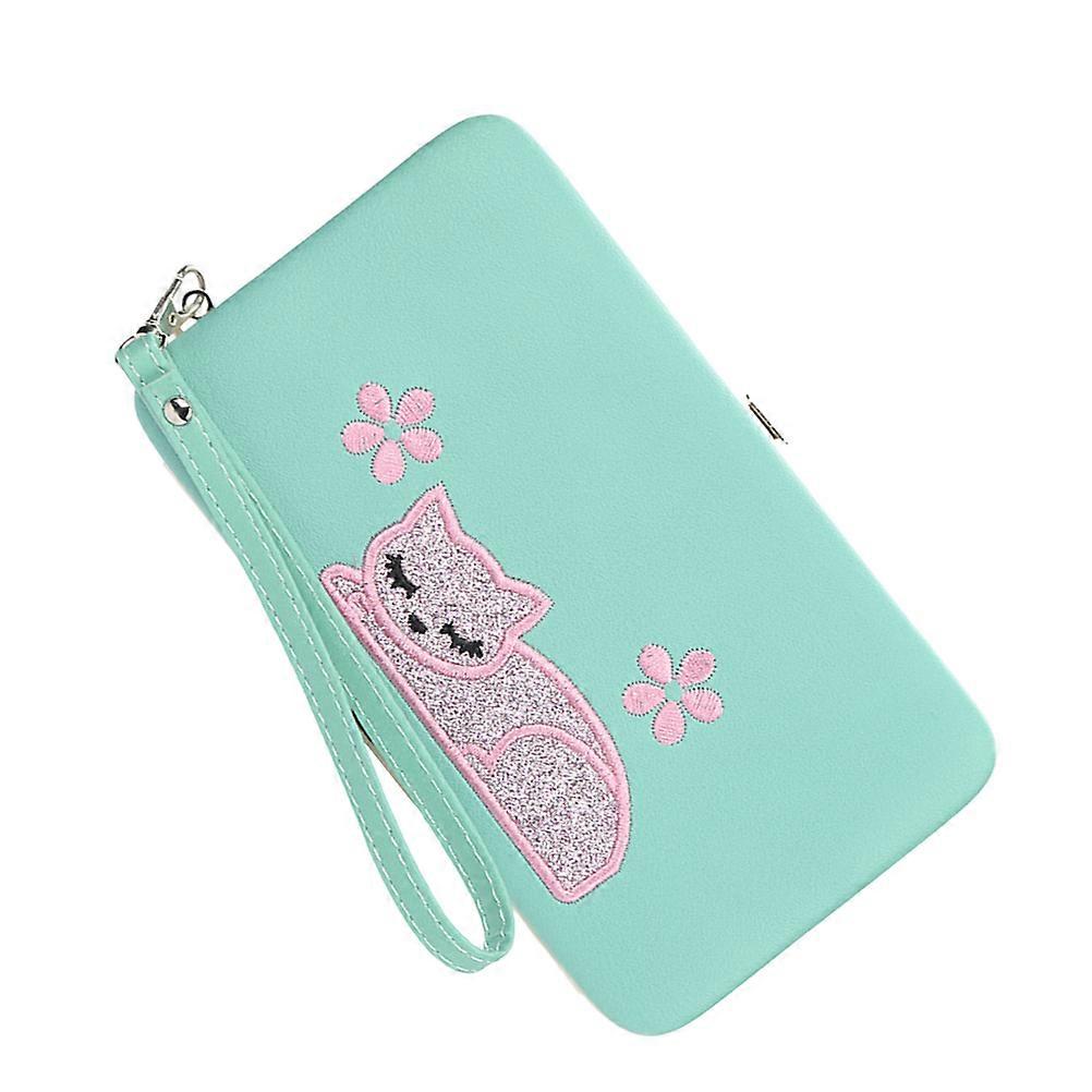 Fashion Handbag Wallet with Cat Embroidery for Women in Light Green PU Great for Storage 12