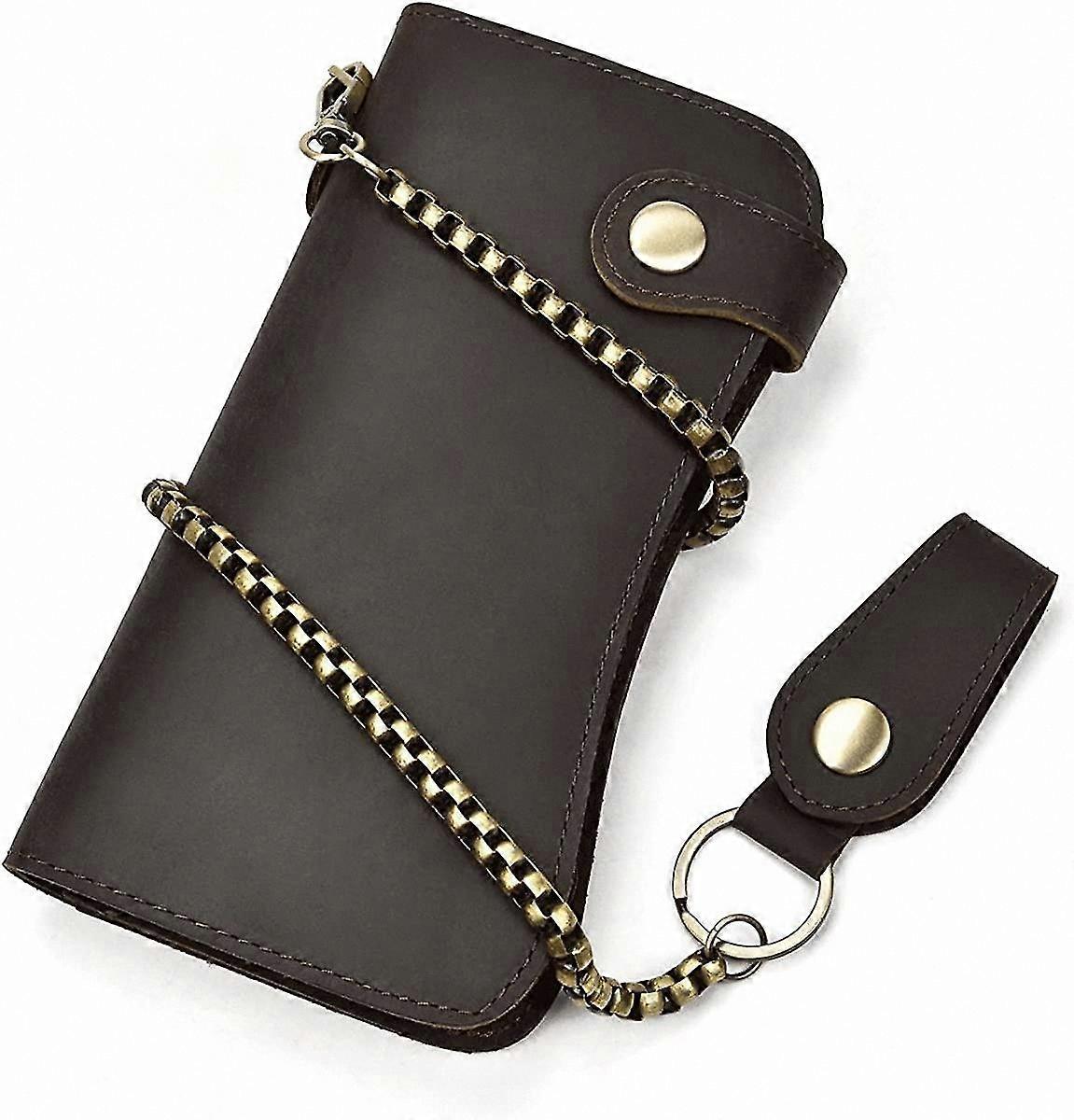 Men's Leather Bifold Wallet with Chain, Engraved Design Long Wallet for Men