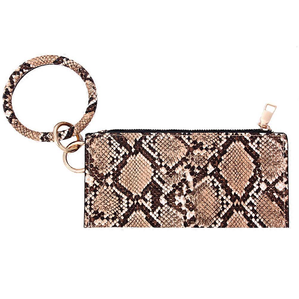 Keychain Wallet for Women Fashion Purse Durable Handbag Coffee Color Round Bracelet Shape Everyday Use 32x10.5x3cm 1Pack