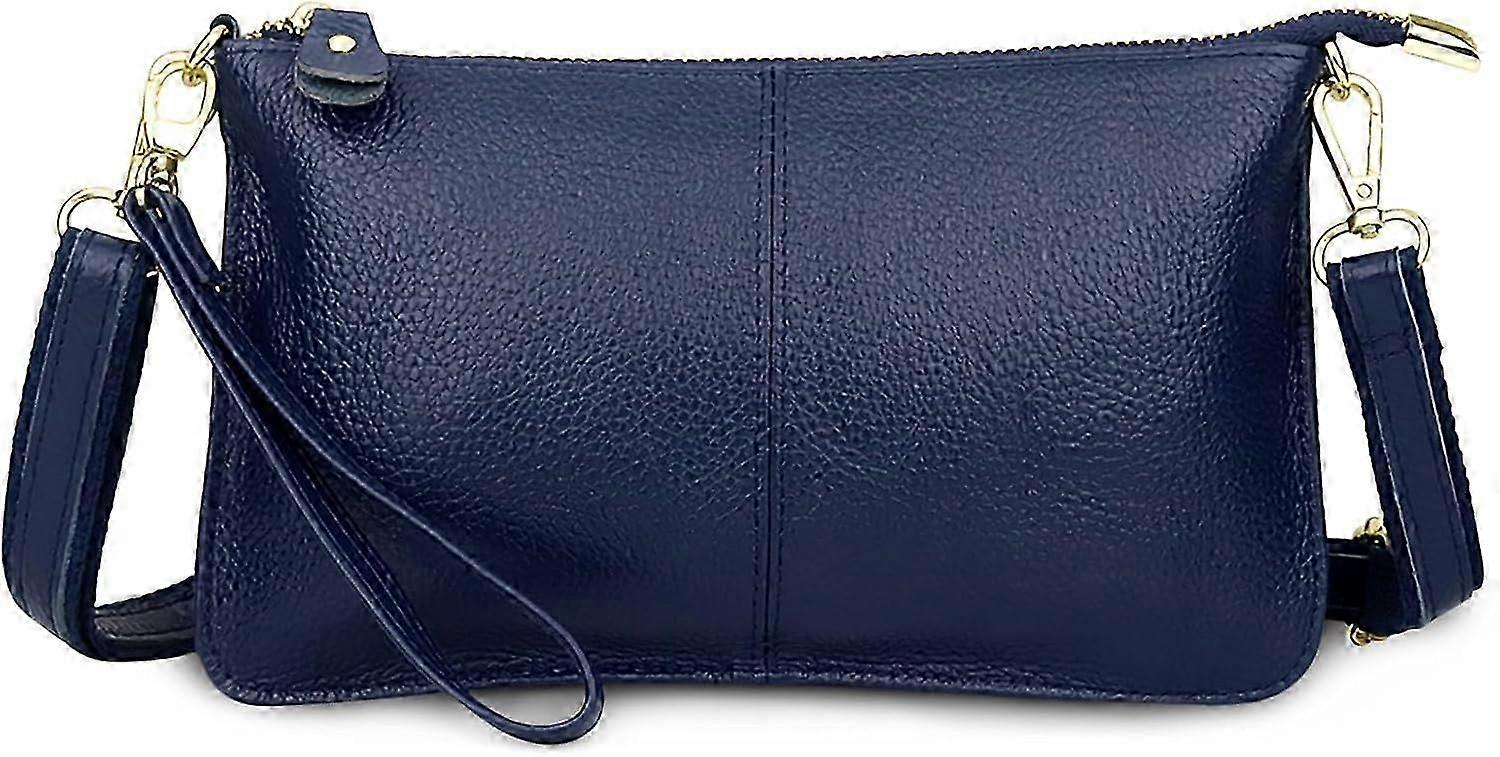 Women Wallet Small Crossbody Bag Cell Phone Purse Genuine Leather Crossbody Bags Zipper Coin Purse with Wrist Straps Blue