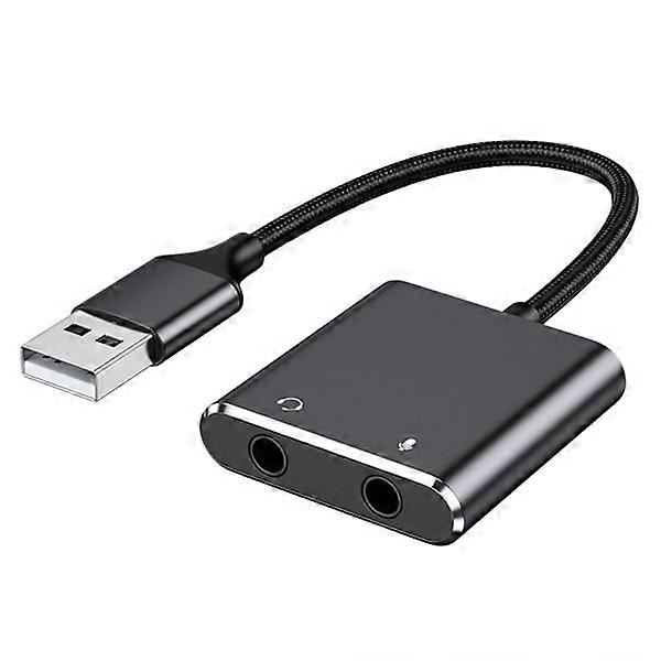 Welcome to our store! Enjoy driver-free installation – simply plug and play. This USB external sound card features universal single and dual headphone jacks. Crafted with a durable aluminum alloy shell, it's pressure and bend-resistant for long-lasting use. Experience reliable and high-quality sound transmission. Equipped with two jacks: a 4-section headphone jack compatible with both 3 and 4-section headphones, and a 3-section microphone jack compatible with 3-section microphones. Type: Audio Cable Interface: USB to Parallel Port Cable Length: 0.2m Conductor Type: Copper Wire Color: Black, Silver Gray Outer Material: Aluminum Alloy Includes: 1 * USB Sound Card