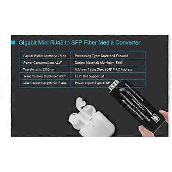 Mini Gigabit Fiber Media Converter 1000Mbps Ethernet with 1310nm Single Mode 20km SFP Module and Ty