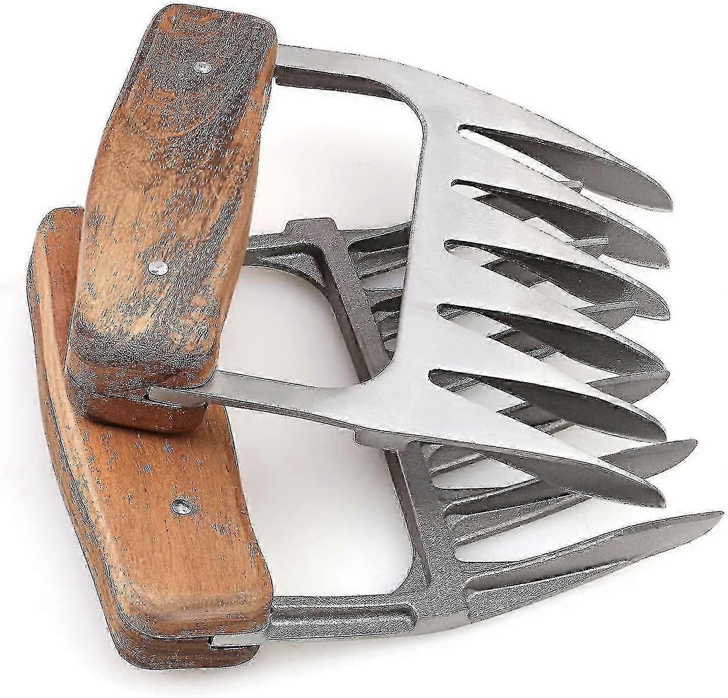 Metal Meat Claws - Stainless Steel Meat Forks With Wooden Handle - Best Meat Claws For Shredding, Pulling, Handling, Lifting & Serving